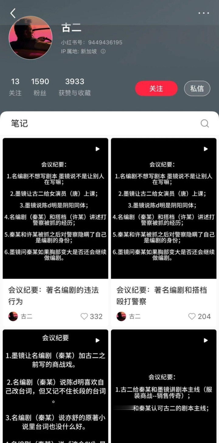 而此前,他用来发布秦雯、王家卫等人录音的微信账号“古二新语”,因“违反《互联网用户公共账号信息服务管理规定》”被停止使用。